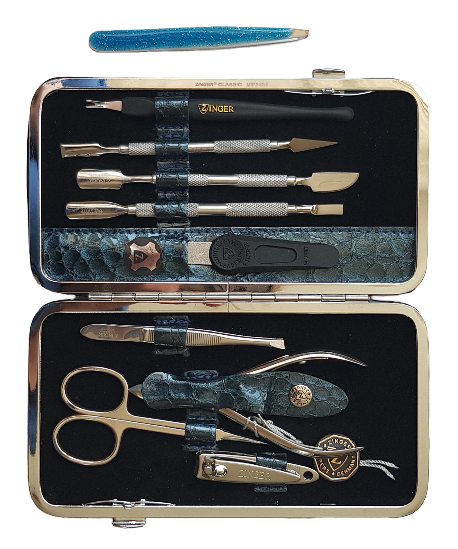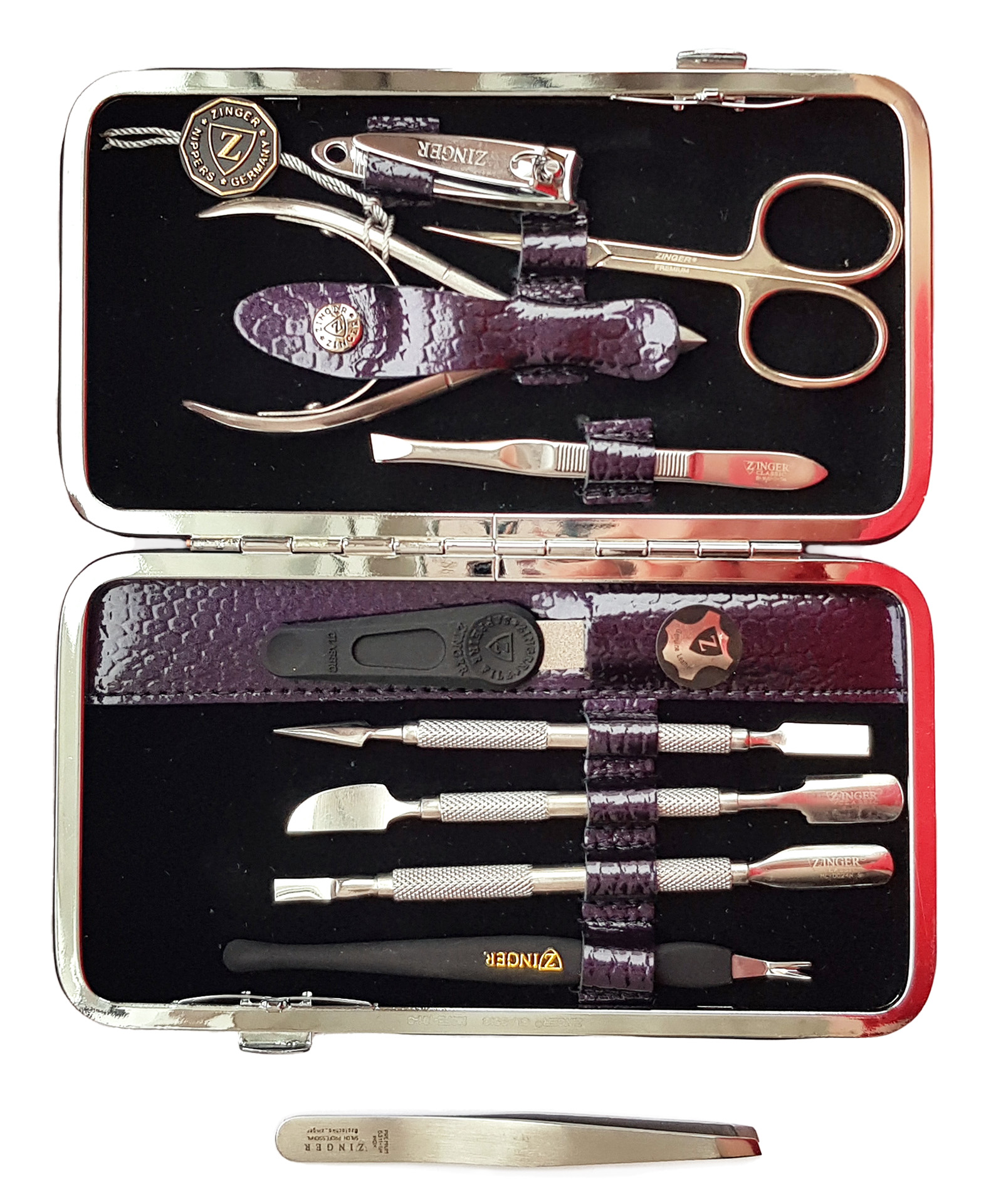 Маникюрный набор Premium-качества Zinger MSFC-101-3 S, 9 предметов + пинцетМаникюрный набор c инструментами Premium-качества ZINGER MSFС-101-3 S. Футляр изготовлен из натуральной кожи. Внутренняя отделка футляра - мягкий велюр, имитация замши. Подарочная коробка с логотипом, внутри отделана бархатной бумагой. В набор входят 9 предметов: кусачки для кутикулы, ножницы для кутикулы, пинцет скошенный, книпсер, пилка алмазная, 3 металлических пушера, триммер. Отдельно - подарок - пинцет в контейнере.Производитель: Zinger Цвет * Недоступно Недоступно Недоступно Недоступно Недоступно Недоступно Недоступно Недоступно Недоступно 5 280,00 ₽ Количество: В корзину Пользовательский список пожеланий OKДобавить в список пожеланийСравнитьСообщить другуИнструменты изготовлены из высококачественной стали марки AISI 420 (40Х13). Технология закалки позволяет сочетать необходимую упругость и высокую твёрдость металла. Вся серия заточена вручную, по стандартам мастеров маникюра: с дополнительной обработкой лезвий и полировкой кончиков. Инструменты произведены в Италии.Набор подходит как для домашнего, так и для профессионального использованияЦвет напыления-серебристый.ХарактеристикиИмя атрибутаЗначение атрибутаКоличество в упаковке9 + 1 шт.ПроизводствоРоссия